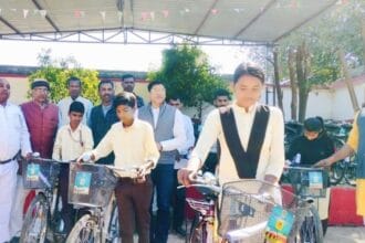 शिक्षा समिति अध्यक्ष, विधायक प्रतिनिधि, भाजपा जिला उपाध्यक्ष, महामंत्री, मंडल अध्यक्ष, संकुल प्राचार्य ने वितरित की साइकल