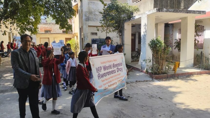 कानपुर (मोहम्मद उस्मान कुरैशी) एनीमिया दिवस के अवसर पर अविनाश ज्ञान निदा हाई स्कूल विद्यालय के बच्चों के साथ तिलक नगर में बाल रोग अकादमी द्वारा एक एनीमिया जागरूकता रैली का आयोजन किया गया। इस रैली का मुख्य उद्देश्य बच्चों और समुदाय में एनीमिया के प्रति जागरूकता फैलाना था, ताकि लोग इसके कारणों, लक्षणों और उपचार के बारे में अधिक जान सकें। एनीमिया शारीरिक समस्या ही नहीं, विकास में भी रुकावट डालता है रैली में अकादमी के सचिव डॉ. अमितेश यादव, लजाय खन्ना, डॉ. रुचिता, डॉ. अलीशान सहित 24 डॉक्टरों ने भाग लिया। इसके साथ ही 85 बच्चों ने भी इस रैली में हिस्सा लिया। इस कार्यक्रम का समन्वय बिंदु सिंह मैम ने किया।