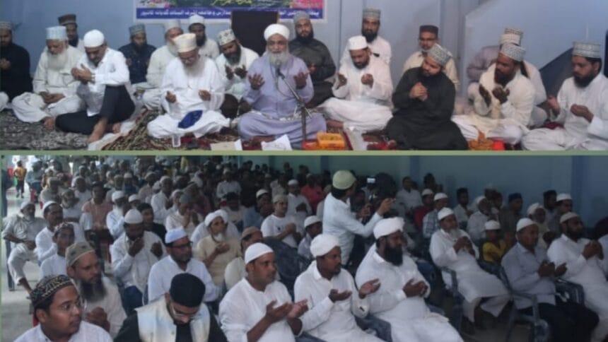 सलातो सलाम के बाद हजारों मरहूमीन व मरहूमात के नाम लेकर उनकी मगफिरत और भारत समेत पूरी दुनिया में अमन व शान्ति के लिए दुआएं की गयीं इस अवसर पर प्रमुख रूप से मोहम्मद रफीक मुंशी ,मौलाना महताब आलम मिस्बाही,डॉ मोहम्मद इस्लाम , क़ारी नौशाद अजहरी, हाफ़िज़ बहरुद्दीन अशरफी,हाजी आरिफ अहमद, शेर खान,हाजी मो. असलम,हाजी सलीम अहमद,हाजी अरबी हसन,मास्टर असलम,मास्टर इकबाल अहमद,मास्टर नौशाद मंसूरी,एम एम खान,हाजी हैदर अशरफी,अब्दुल करीम,लाल मोहम्मद, इदरीस खान, फ़ैज़ी,अशफाक अहमद,शमशाद गाज़ी, फखरुद्दीन बाबू,हाजी मास्टर सईद आदि उपस्थित थे