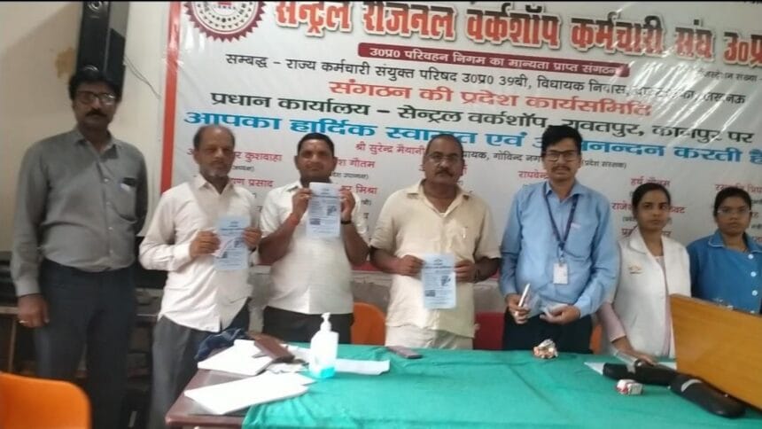 कानपुर। मोहम्मद उस्मान कुरैशी। सेंट्रल रीजनल वर्कशॉप रावतपुर कानपुर मे नेत्र शिविर का आयोजन किया गया इस नेत्र शिविर के माध्यम से सेंट्रल रीजनल वर्कशॉप के कर्मचारियों को आंखों की जांच की गई आंखों की प्रदेश अध्यक्ष अनूप कुशवाहा ने कैंप लगवाया है अनूप कुशवाहा ने सभी कर्मचारियों की आंखों की जांच कराई जिस किसी की आंखों में दिक्कत ना हो और उनको चश्मा आंखों की दवा आई ड्रॉप और मोतियाबिंद ऑपरेशन के लिए भी कहा साथी साथ शंकर आई हॉस्पिटल का कैंप सुबह 10. बजे से 3. बजे तक 70 कर्मचारी आंखों की जांच की गई यह बताया शंकर हॉस्पिटल के मैनेजर कमलकांत अवस्थी ने साथ में रीजनल वर्कशॉप के प्रदेश अध्यक्ष अनूप कुमार कुशवाहा ने बताया बताया कि आने वाले समय में मैं इससे बड़ा कैंप लगाऊंगा जिससे कर्मचारियों को सारी कोई सुविधा या समस्या हो तो उसकी जांच तुरंत हो जाए