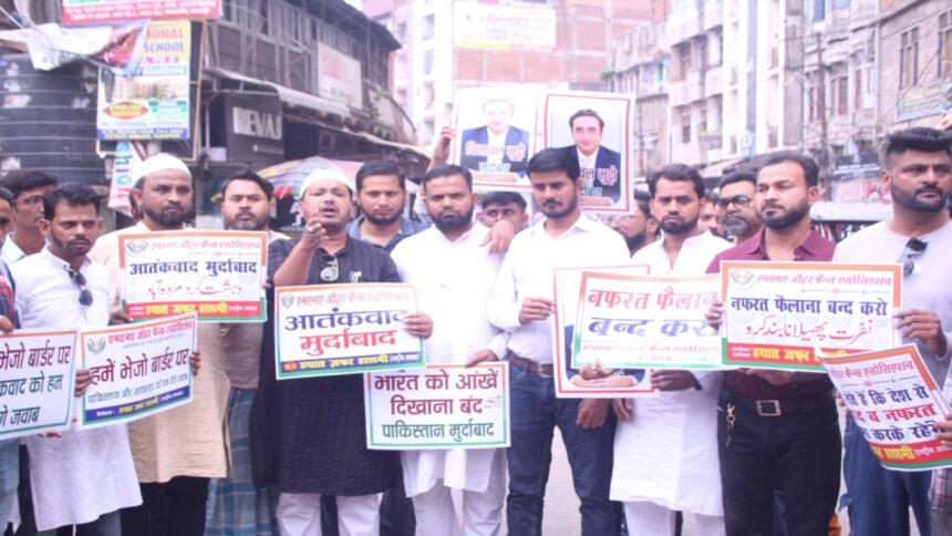 Thank you for reading this post, don't forget to subscribe!कानपुर।मोहम्मद उस्मान कुरैशी। आज एमएमए जौहर फैन्स एसोसिएशन के राष्ट्रीय अध्यक्ष हयात ज़फ़र हाशमी के नेतृत्व मे जम्मू-कश्मीर के पहलगाम आतंकी हमले के बाद भारत सरकार द्वारा पाकिस्तान पर कार्रवाई करते हुए सिंधु नदी का पानी रोके जाने के बाद कल पाकिस्तान के विपक्ष के नेता बिलावल भुट्टो द्वारा भारत में खून की नदियां बहा देंगे के बयान का जवाब आज शहर की घनी मुस्लिम आबादी वाले बेकनगंज स्थित दादा मियां चौराहे से दिया गया।